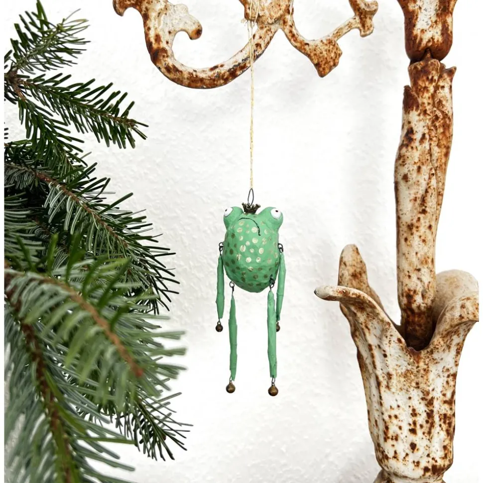 Froschglöckchen habe ich aus Papier und Draht hergestellt, bemalt und mit Glöckchen und Bronzekrone dekoriert. Es macht sich hervorragend im Weihnachtsbaum, am Türkranz oder als kleines Geschenk.