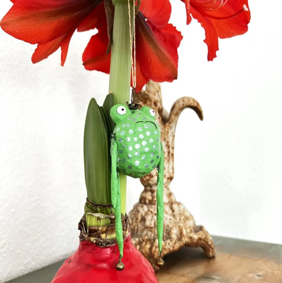 Diesen grumpy frog habe ich aus Papier und Draht hergestellt, bemalt und mit Glöckchen und Bronzekrone dekoriert.