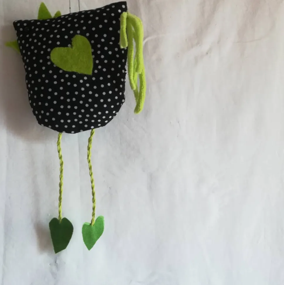 Material: Baumwollstoff, Kordel, Holzperlen, Filz, Satinband, Polyesterwatte