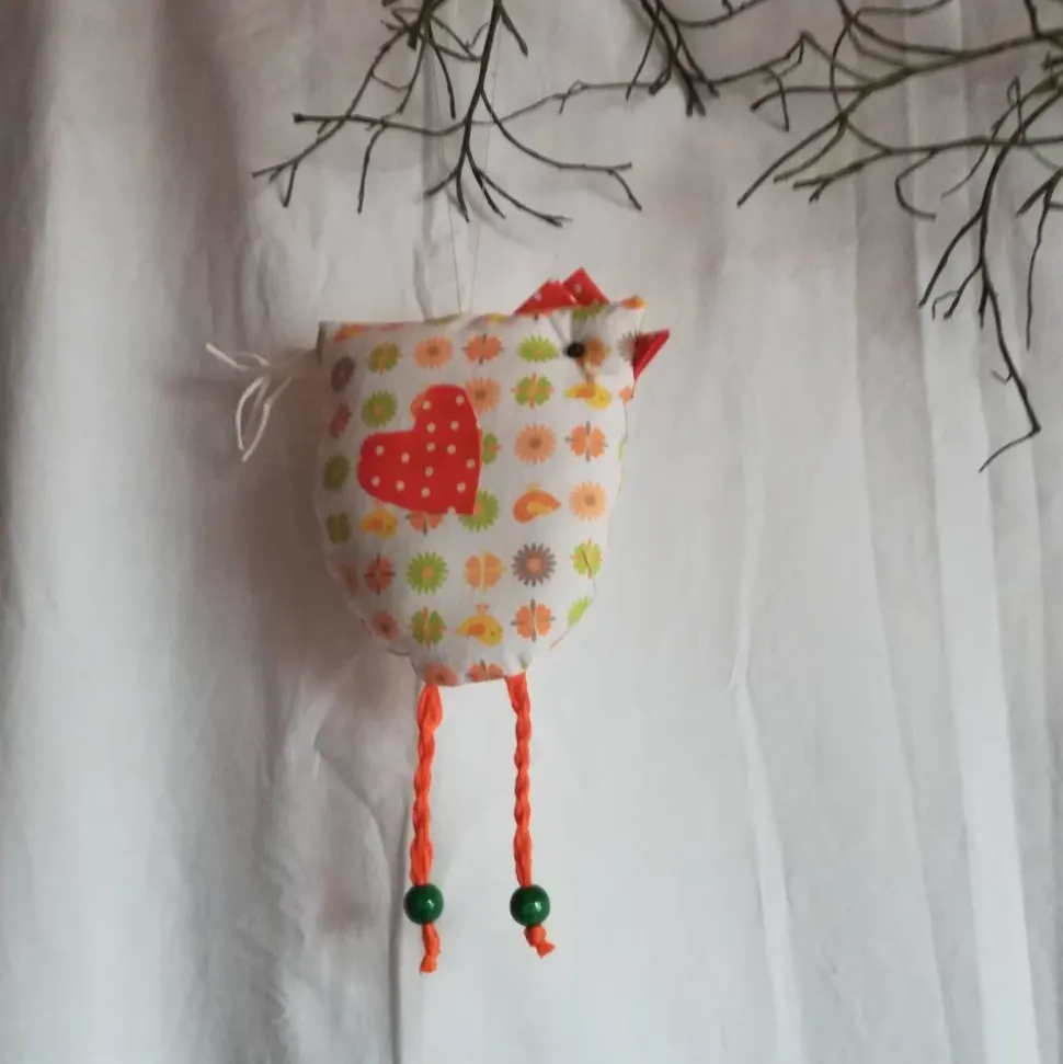 Material: Baumwollstoff, Kordel, Holzperlen, Filz, Satinband, Polyesterwatte