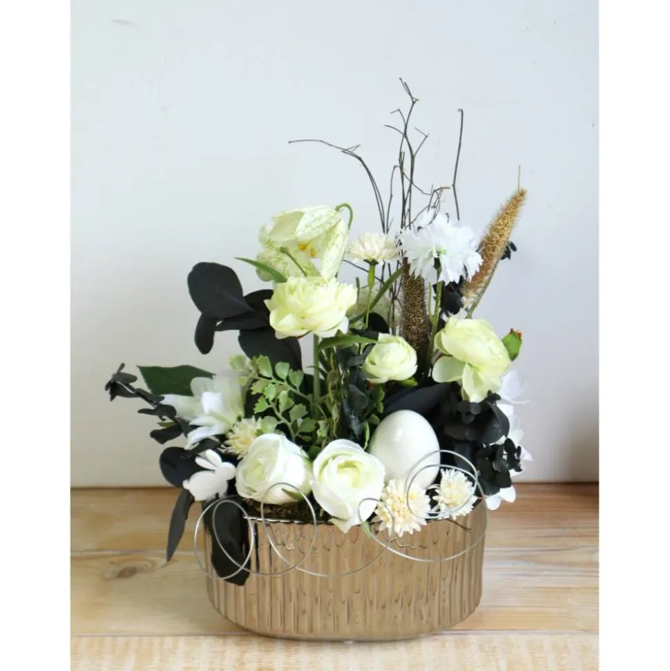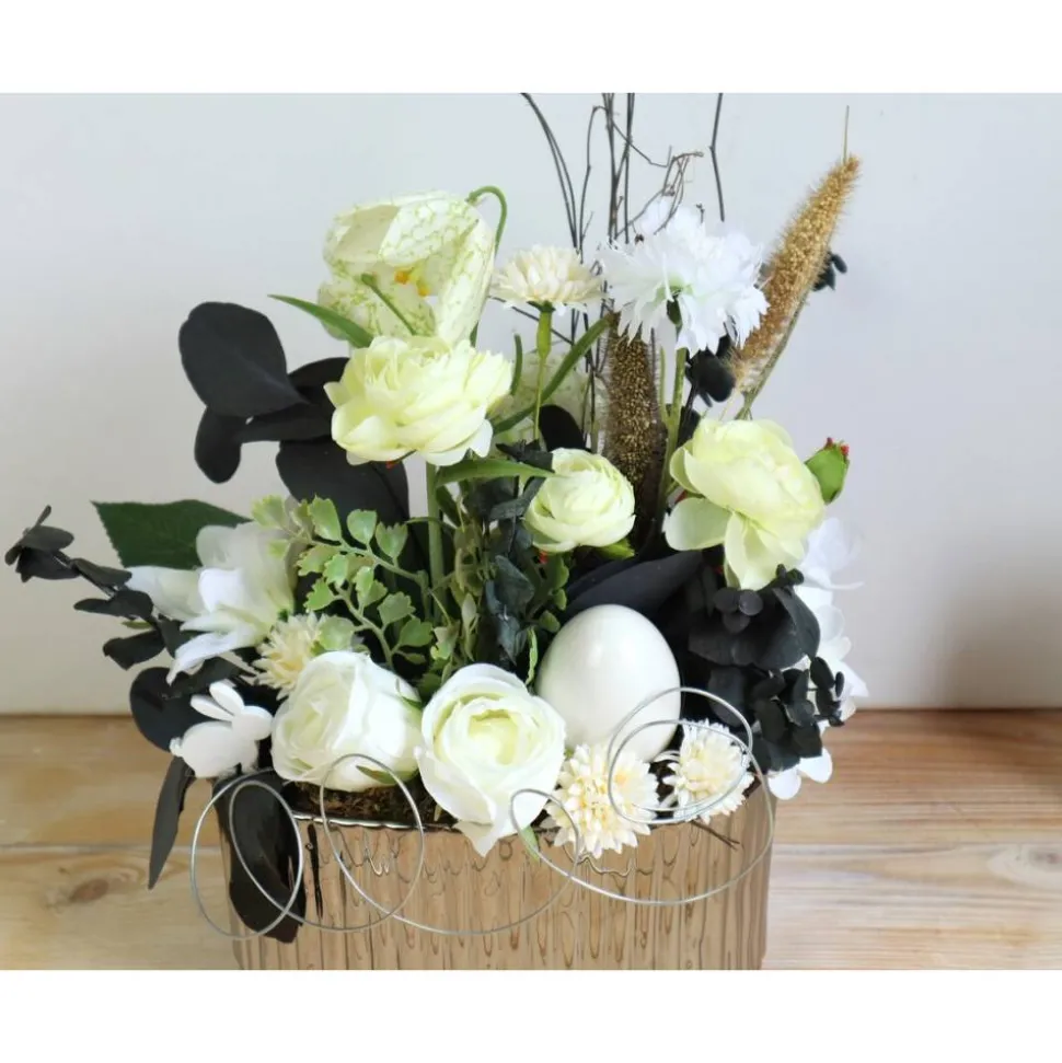 Material: Keramikschale, künstliche Blüten und Grün