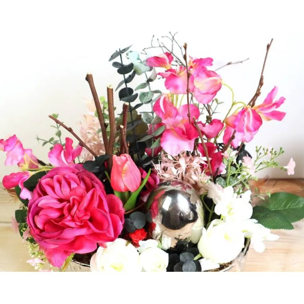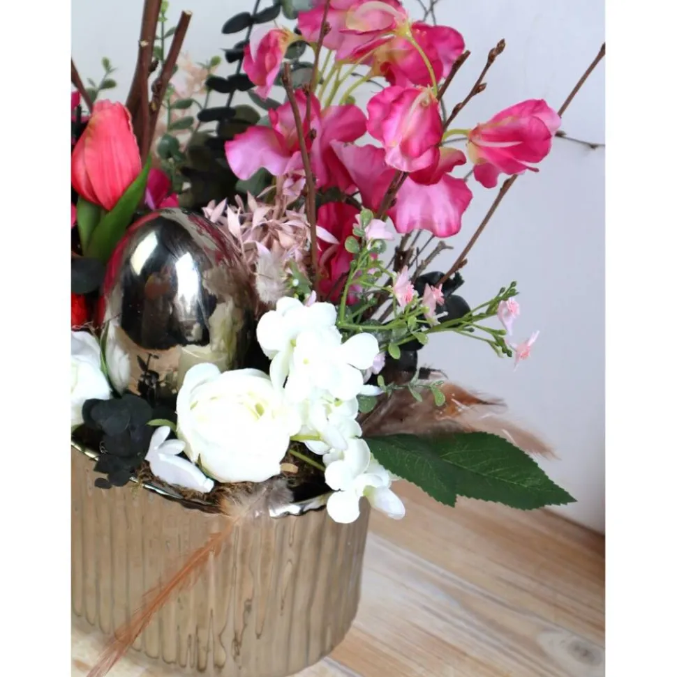Material: Keramikschale, künstliche Blüten und Grün, Keramikei