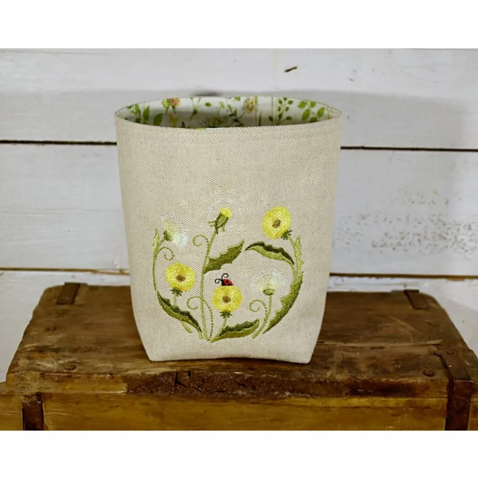beigefarbenes Utensilo mit einer aufwändigen detailreichen Blüten-/ Gräserstickerei,