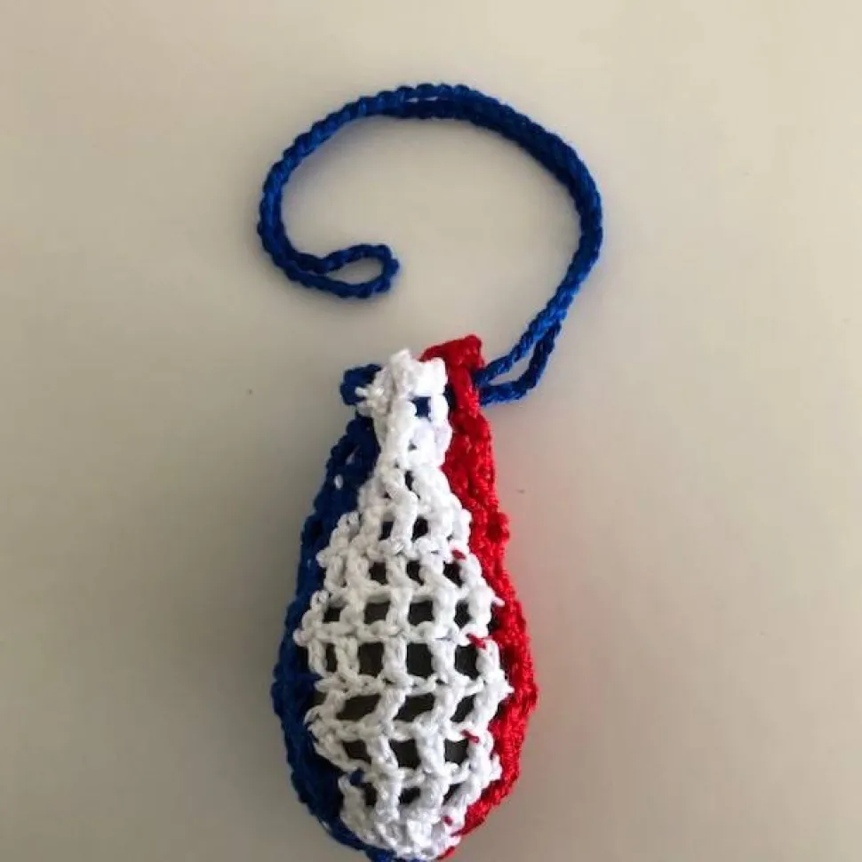 Man legt ein hartgekochtes Ei ohne Sprung in das Netz und schleudert es so hoch es geht. So ein Hühnerei ist ein Wunder der Natur und hält etwas aus.