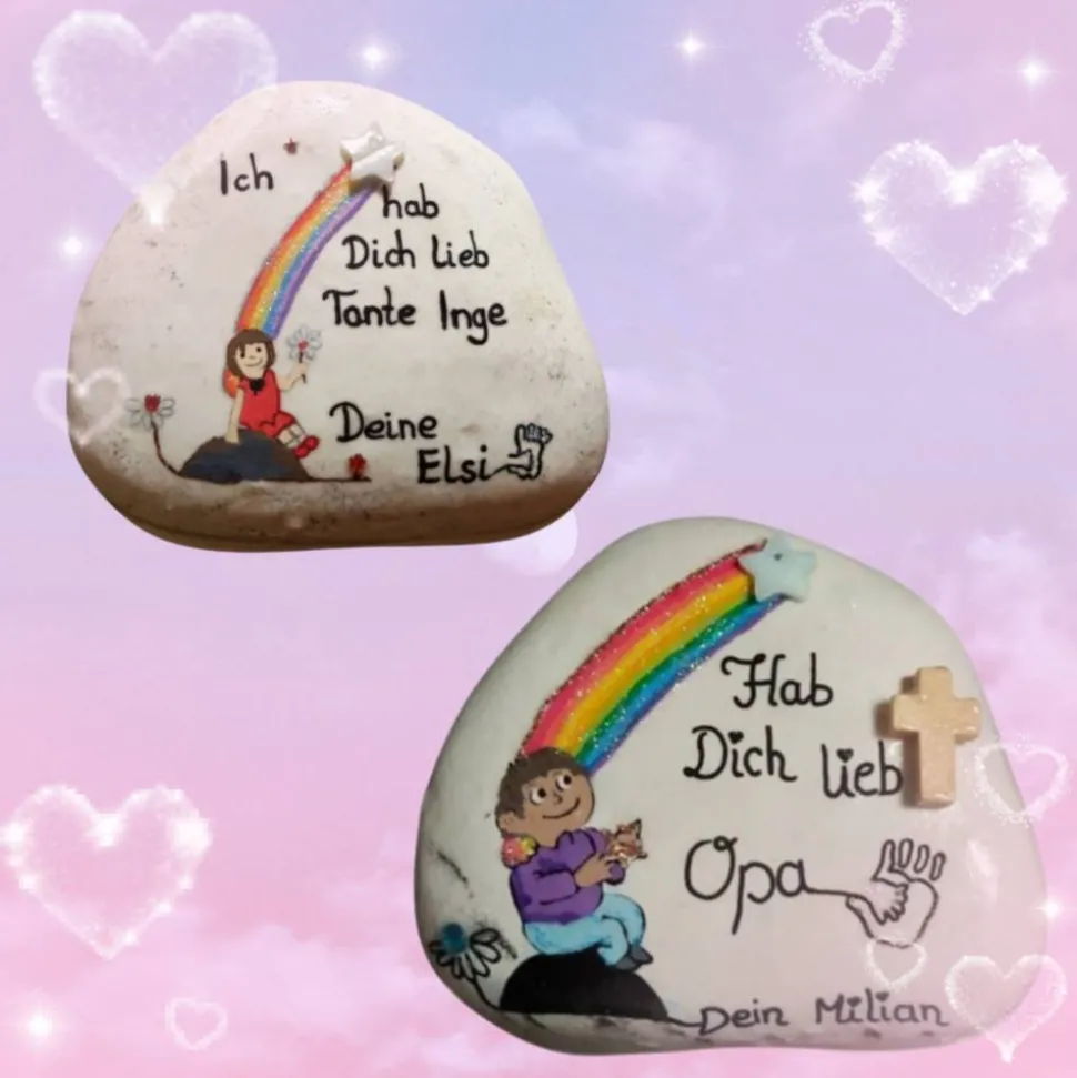 Trauersteine als individuelle Kunstwerke – Symbole der Liebe. Diese „Gedenksteine“ sind weit mehr als nur Steine. Sie tragen die Essenz von Erinnerungen, Liebe und Verlust in sich. Jeder Stein ist ein Symbol für die Einzigartigkeit eines Lebens, für Momente, die unvergessen bleiben. Sie sind mehr als Gedenkstücke – sie sind ein Spiegelbild von Liebe und Erinnerung, die niemals verblassen werden.