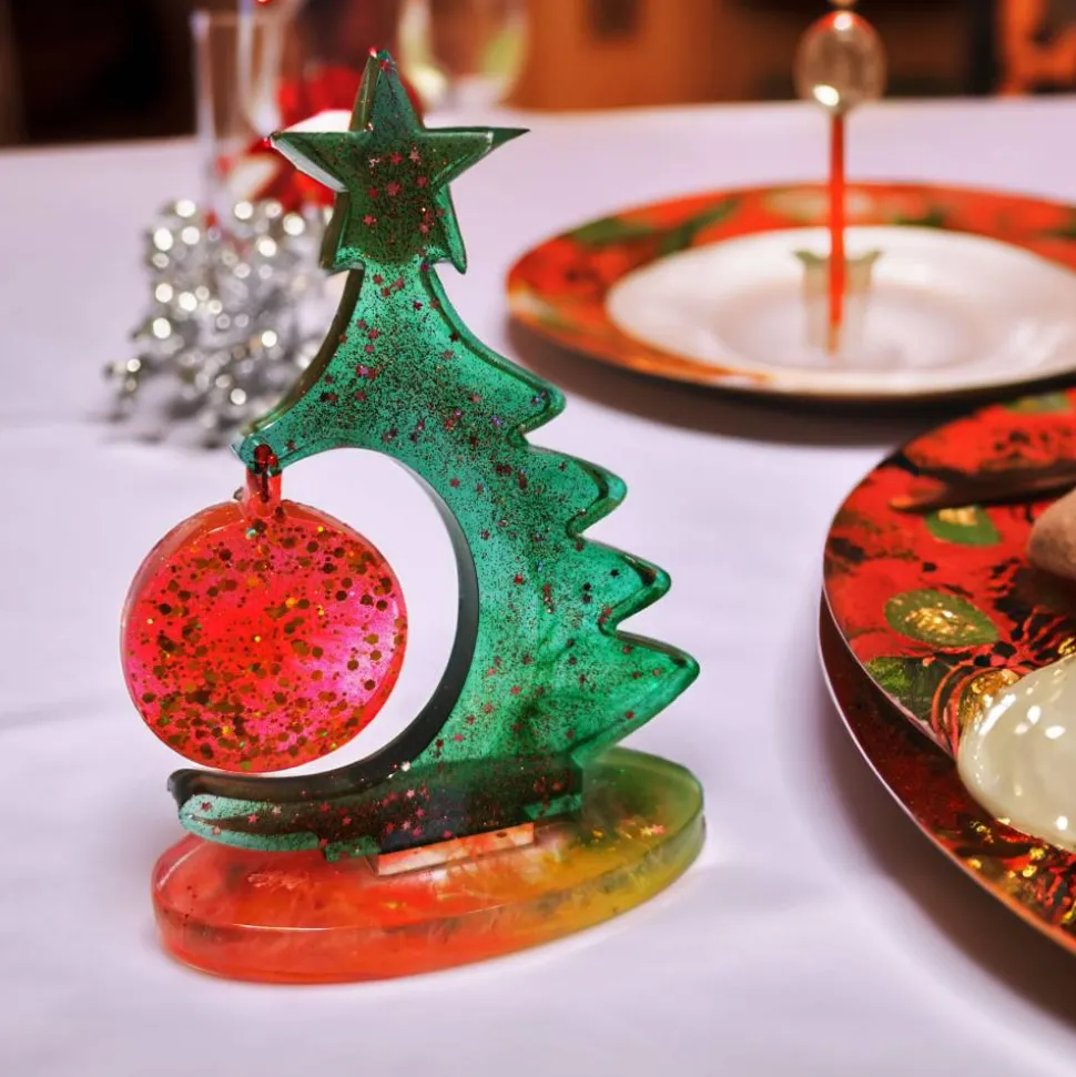 Funkelnder Weihnachtsbaum mit roter Kugel – Handgemachte Resin-Dekoration für die Festtage