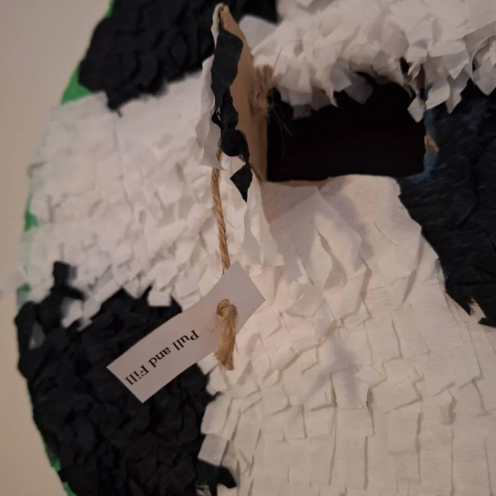 Dann wird sie aufgehängt. Mit der Hilfe eines Stabes können dann abwechselnd( z.b. bis die Musik ausgeht) alle Mitspieler die Piñata zerschlagen. Lustig ist auch die Piñata an einem beweglichen Strick ( z.B. über einen Ast gespannt) auf zuhängen, dann kann sie hin und her geschwenkt werden während derjenige, mit verbundenen Augen, versucht sie zu treffen.