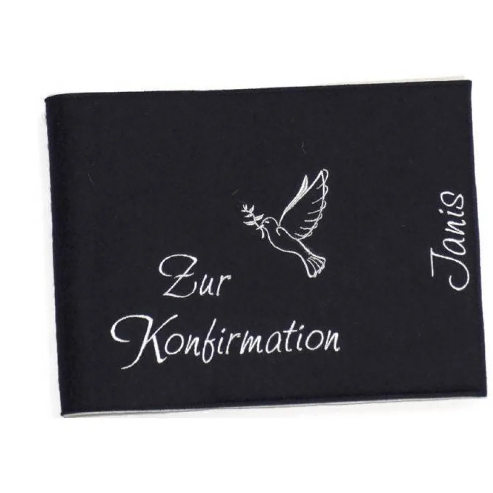 Besonderes Detail ist die eingestickte Taube zusammen mit dem Namen des Kindes