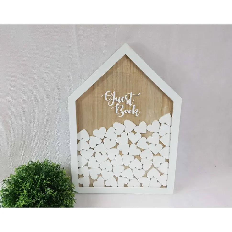 Sehr schönes Gästebuch zur Hochzeit oder alle anderen Anlässe in Form eines Hauses aus Holz mit kleinen Holzherzen zum Einwerfen!