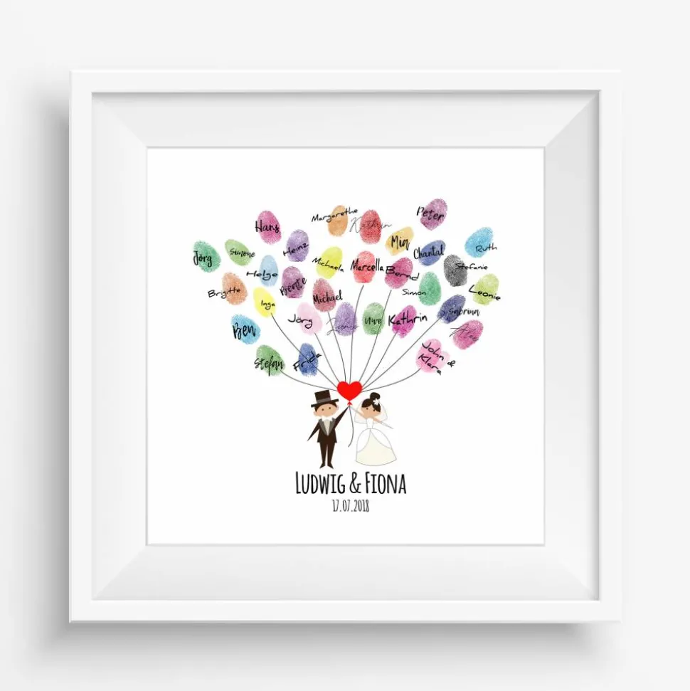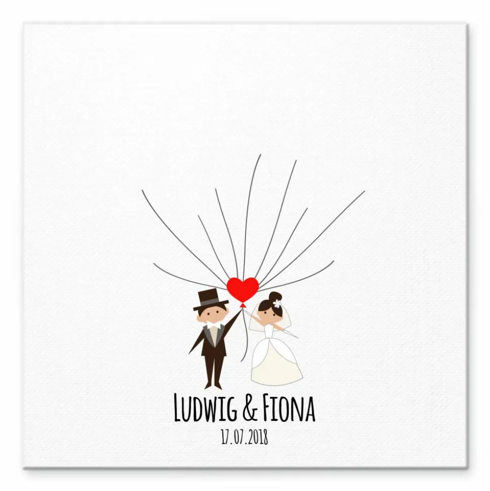 Gästebuch Hochzeit Fingerabdruck Leinwand Personalisiert Herz Luftballons Brautpaar Geschenk Hochzeitsdekoration Namen 50x50 cm Keilrahmen