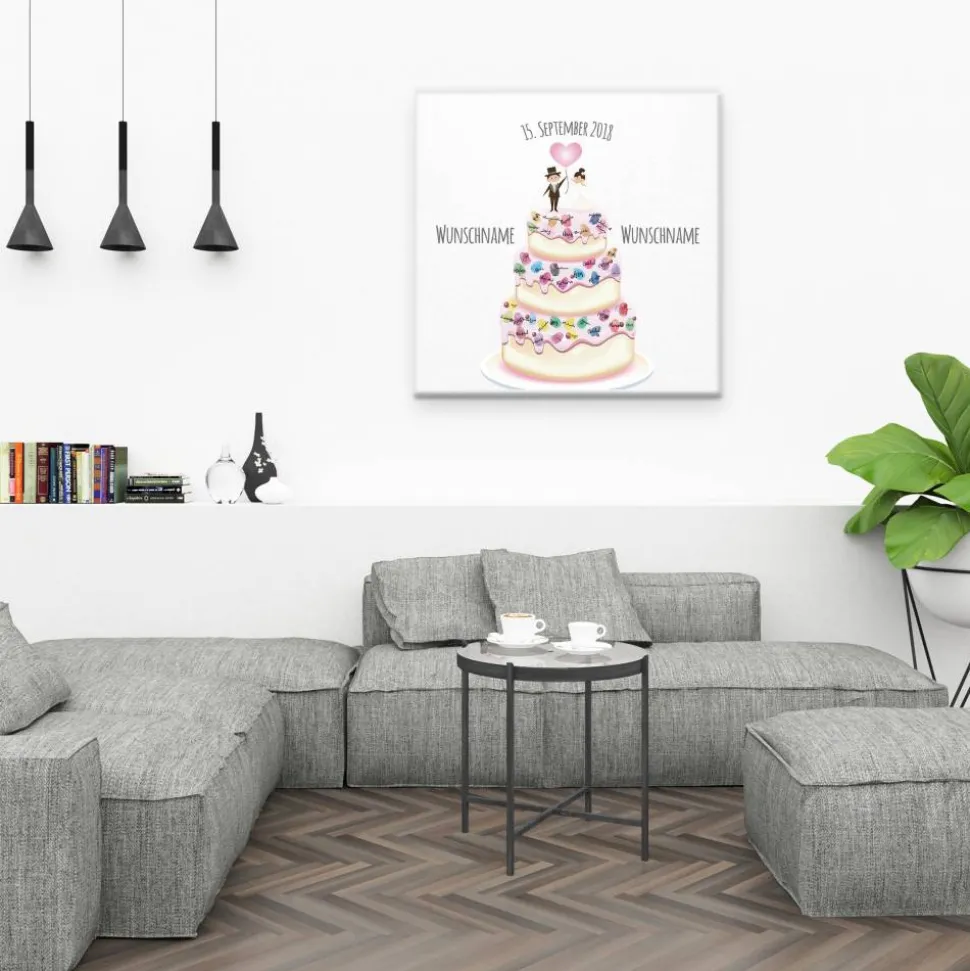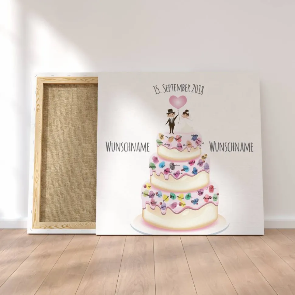 Gästebuch Hochzeit Fingerabdruck Leinwand Personalisiert Hochzeitstorte Brautpaar Geschenk Hochzeitsdekoration Namen 50x50 cm Keilrahmen