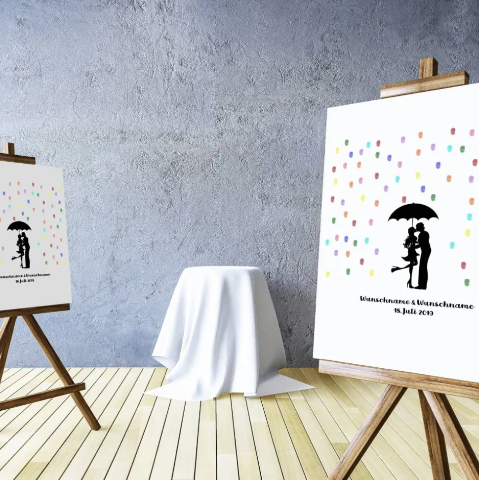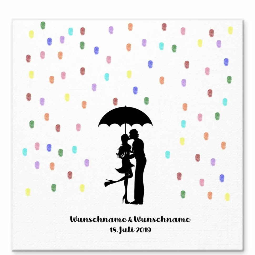 Gästebuch Hochzeit Fingerabdruck Leinwand Personalisiert Regentropfen Kuss Brautpaar Geschenk Hochzeitsdekoration Namen 50x50 cm Keilrahmen