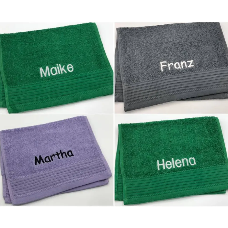 Gästehandtuchfarbe, Schriftart und Namen .