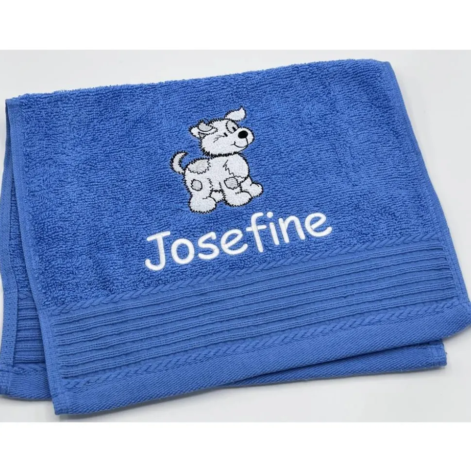 Gästehandtuchfarbe, Stickmotivnummer, Schriftart und Namen .
