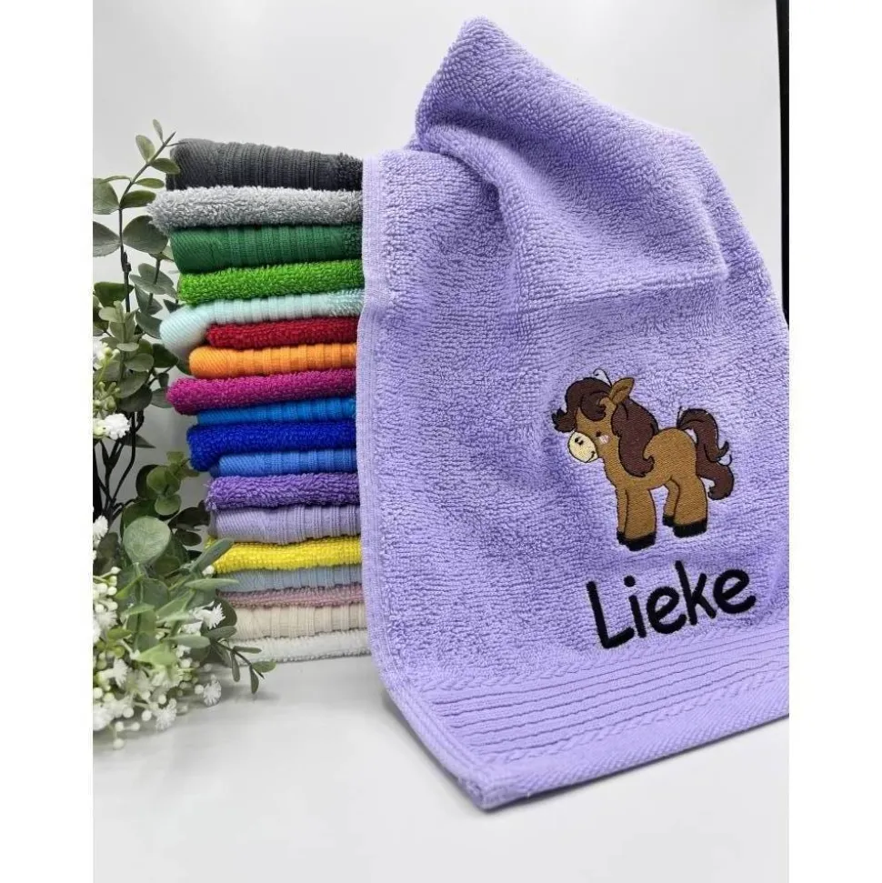 Gästehandtuchfarbe, Schriftart und Namen .
