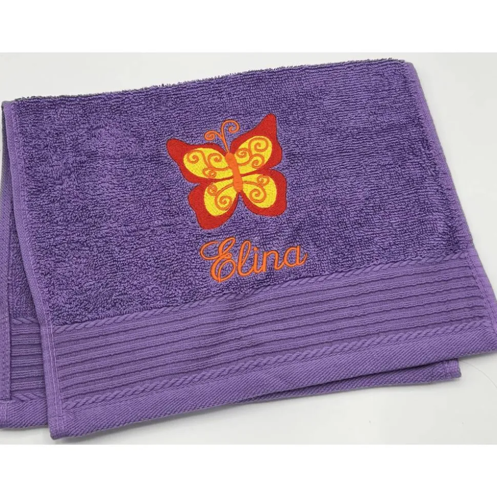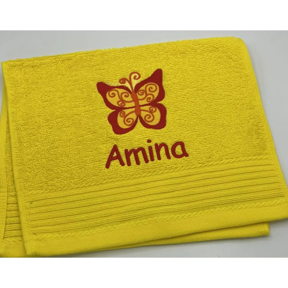 Gästehandtuchfarbe, Stickmotivnummer, Schriftart und Namen .