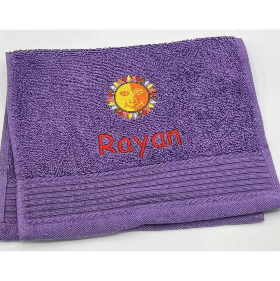 Gästehandtuchfarbe, Stickmotivnummer, Schriftart und Namen .