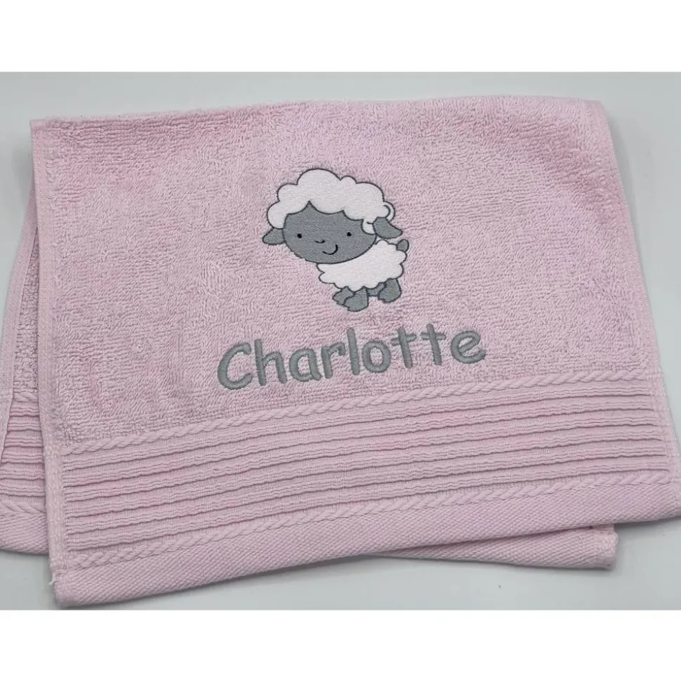 Gästehandtuchfarbe, Stickmotivnummer, Schriftart und Namen .