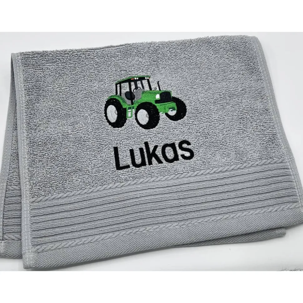 Gästehandtuchfarbe, Stickmotivnummer, Schriftart und Namen .