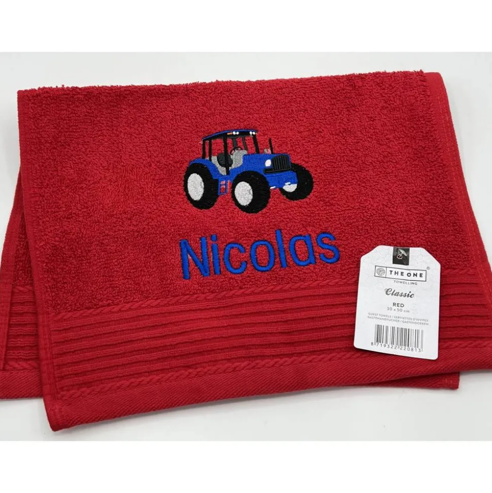 Gästehandtuchfarbe, Stickmotivnummer, Schriftart und Namen .
