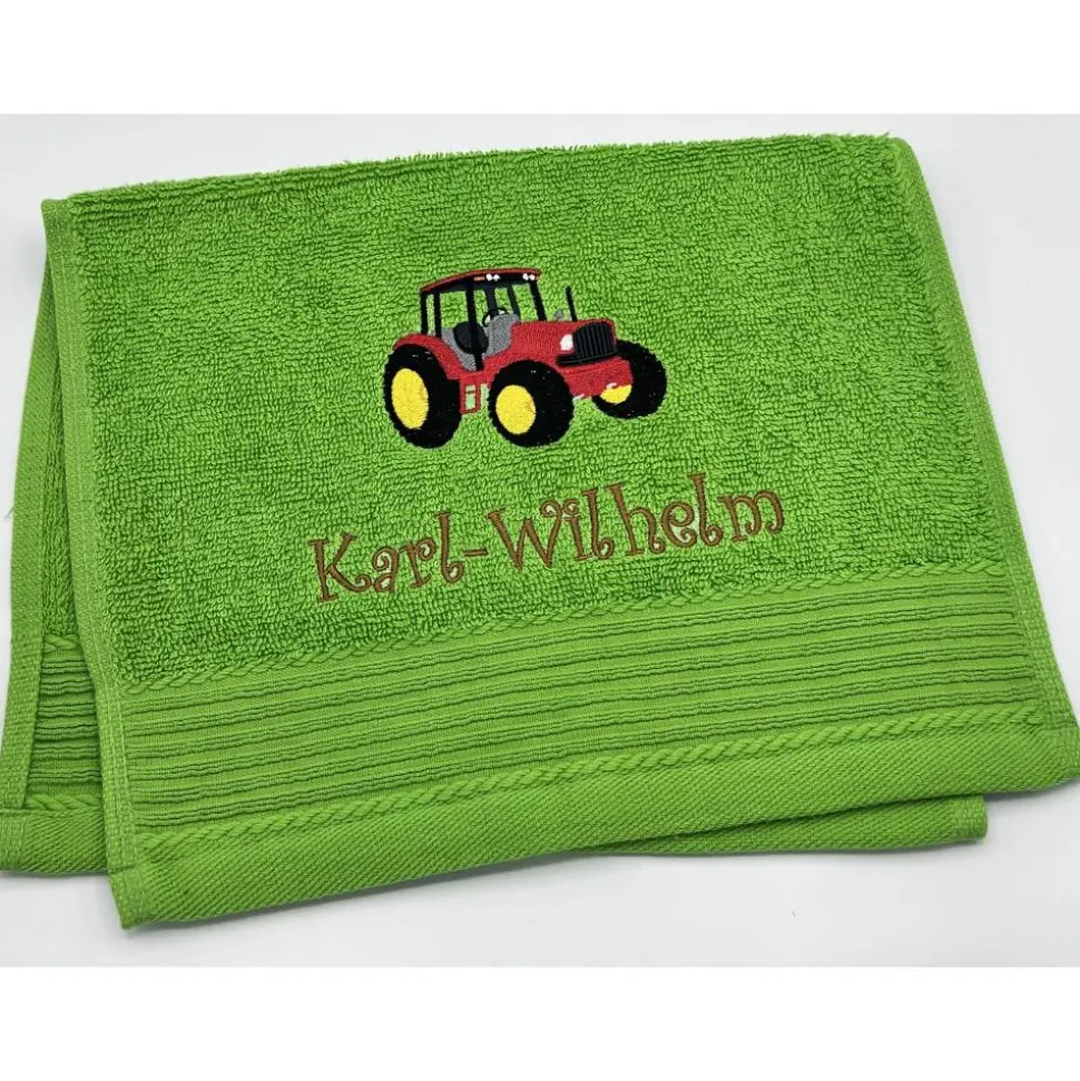 Gästehandtuchfarbe, Stickmotivnummer, Schriftart und Namen .