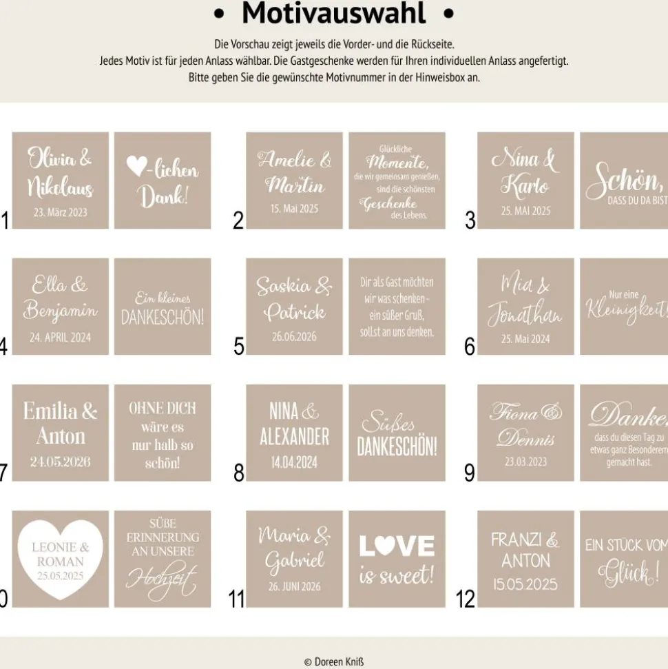 2. Bitte geben Sie Kommentarfeld im Bestellverlauf Ihre Wunschdaten an (Motivnummer, Farbnummer, Anlass, Name(n), Datum).
