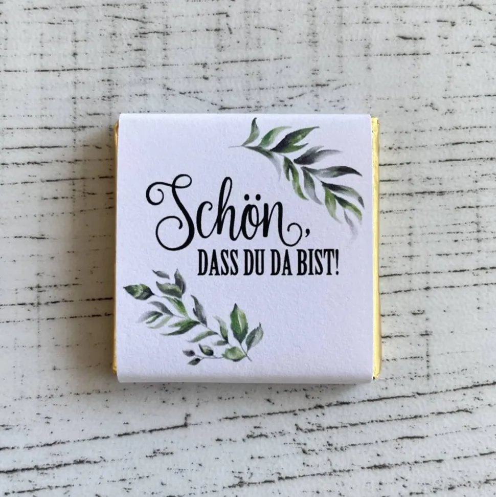 ♥ Geschmackssorten: Vollmilch, Zartbitter und Weiße Schokolade (Keine Sortenauswahl – die Täfelchen werden gemischt geliefert.)