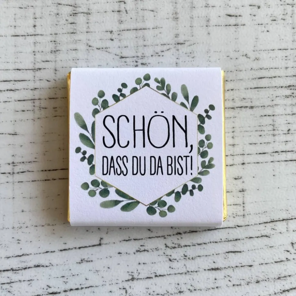♥ Geschmackssorten: Vollmilch, Zartbitter und Weiße Schokolade (Keine Sortenauswahl – die Täfelchen werden gemischt geliefert.)