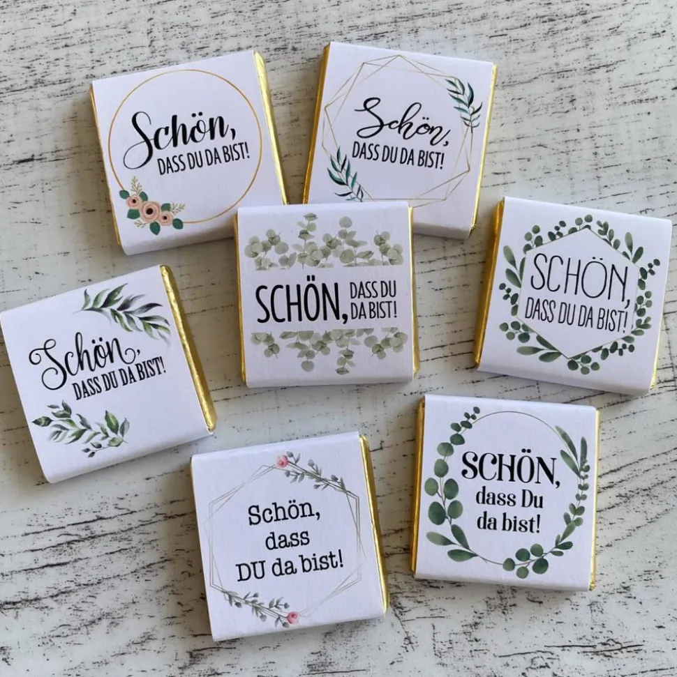 ♥ Geschmackssorten: Vollmilch, Zartbitter und Weiße Schokolade (Keine Sortenauswahl – die Täfelchen werden gemischt geliefert.)