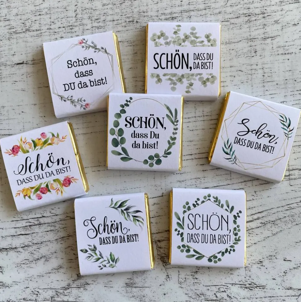♥ Geschmackssorten: Vollmilch, Zartbitter und Weiße Schokolade (Keine Sortenauswahl – die Täfelchen werden gemischt geliefert.)