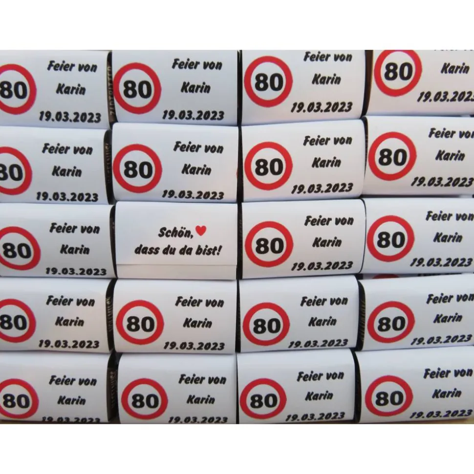 Schokoladentäfelchen mit einer Banderole umlegt, fertig bedruckt nach ihren Wünschen und Angaben –