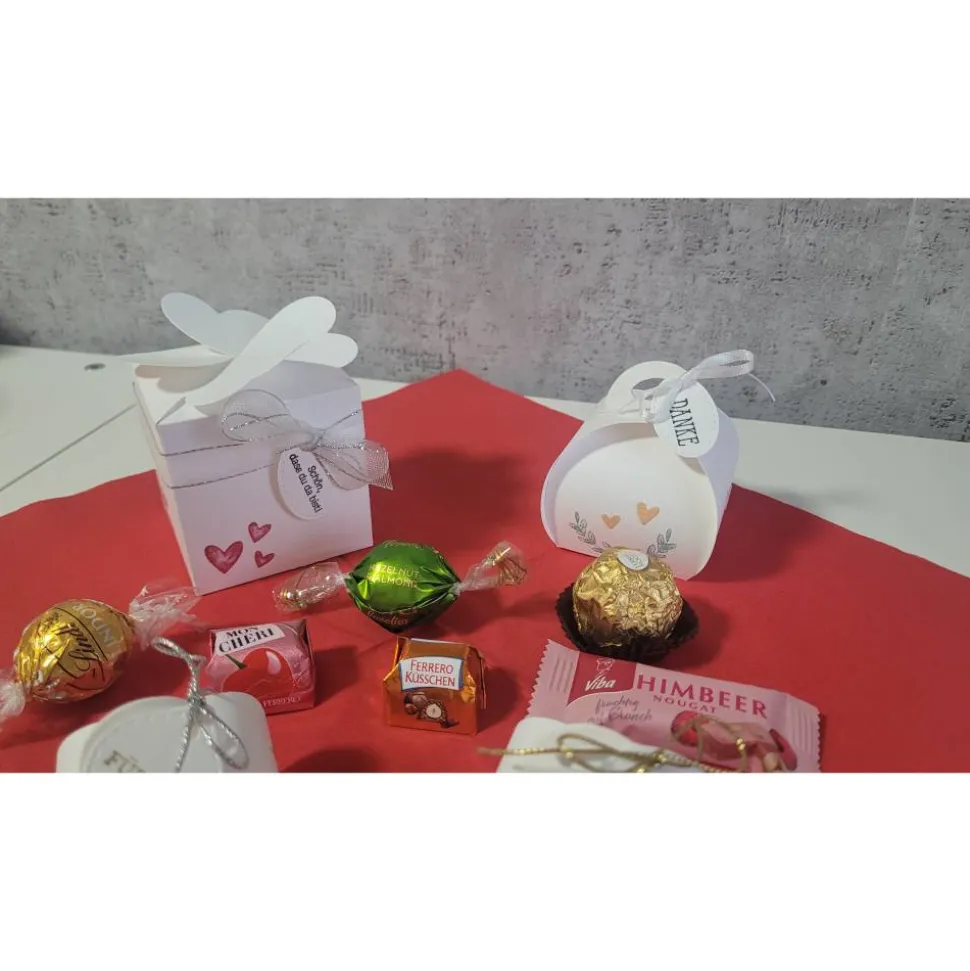 Ein kleiner Hingucker auf der Festtafel und ein kleiner Gruß an eure Gäste. Befüllen kann man je nach Größe mit Hochzeitsmandel, Nusskonfekt, Kirschpraline, Schokokugeln usw.