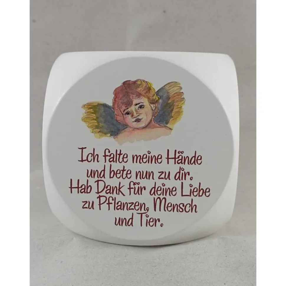 Ein süßer Gebetswürfel für Kinder. Der weiß lackierte Gebetswürfel ist mit unterschiedlichen Engelgebeten und verschiedenen Engelmotiven bunt bemalt . Ein schönes Geschenk um mit Kinder spielerisch und nachhaltig das Beten zu lernen.