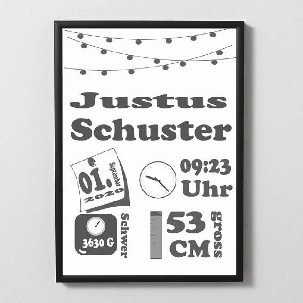 Ein ganz individuelles persönliches Geschenk zur Geburt. Gerne schicken wir Dir auch noch weiter Designmöglichkeiten.