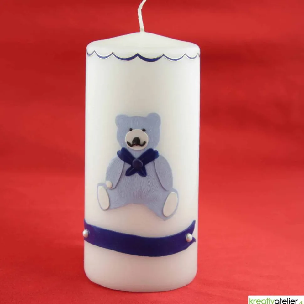 Diese handgefertigte Geburtskerze trägt eine tiefe symbolische Bedeutung. Das Licht der Kerze steht für das neue Leben und die Hoffnung, die das Kind in die Welt bringt. Der hellblaue Bär symbolisiert Geborgenheit, Schutz und die kindliche Unschuld, die mit der Geburt eines Babys verbunden sind. Die zarten Verzierungen in Blau verleihen der Kerze eine friedliche und beruhigende Ausstrahlung, die den Wunsch nach einem behüteten Lebensweg für das Kind zum Ausdruck bringt.