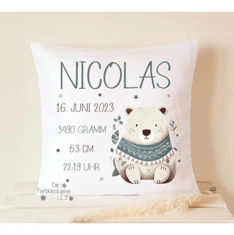 Das Kissen ist nicht nur eine schöne Deko für das Kinderzimmer, sondern auch ein wunderschönes Erinnerungsstück an die Geburt.