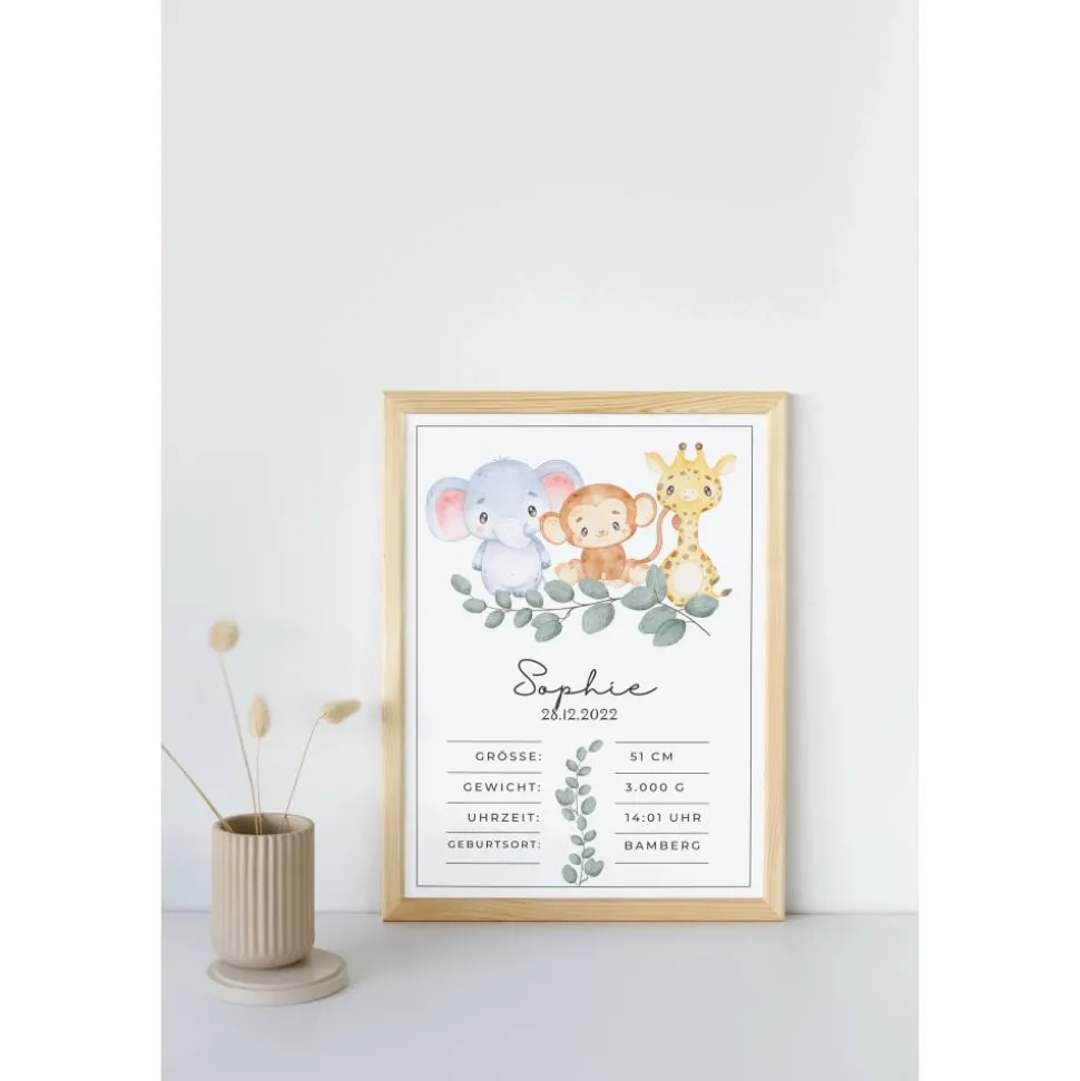 Geburtstafel Tiere Elefant | Geburtsdaten Poster Wild Ones | Geburtsposter | Geburtsanzeige | Geburtsbild | personalisie