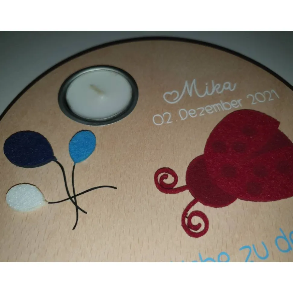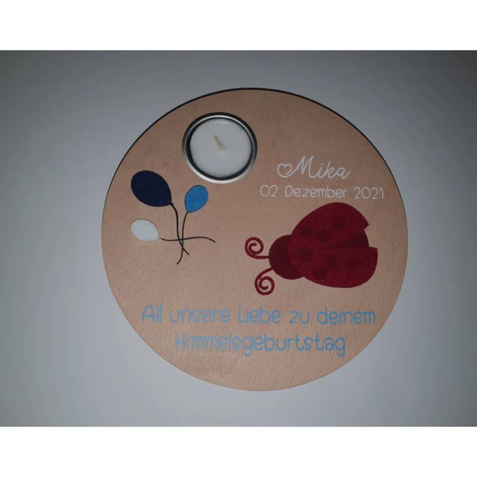 Gedenklicht zum Himmelsgeburtstag | Geburtstagslicht | Geschenk zum Sternengeburtstag | Geburtstagsbrett Käfer