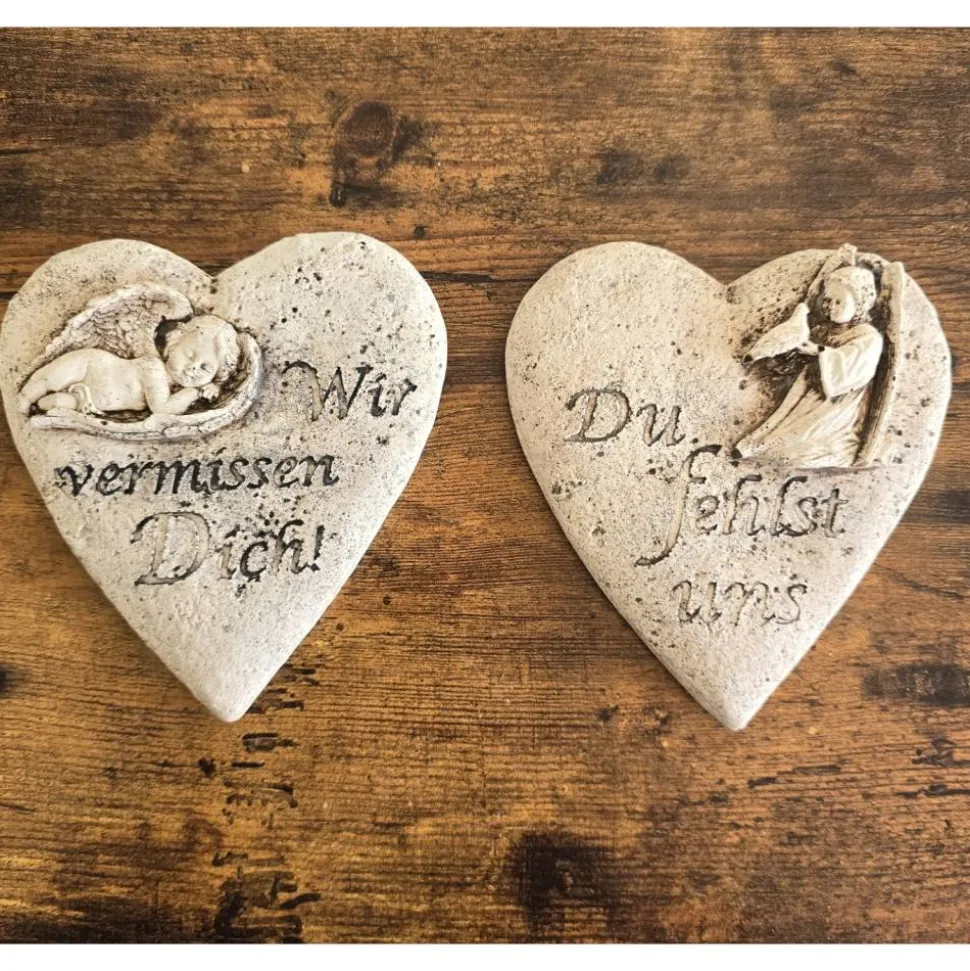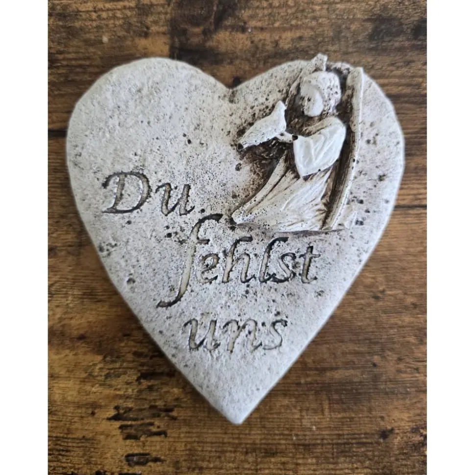 Herz mit einem Engel und einem schönen Spruch „Du fehlst uns“ oder „Wir vermissen Dich“