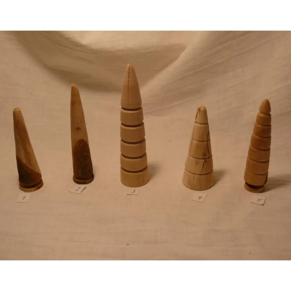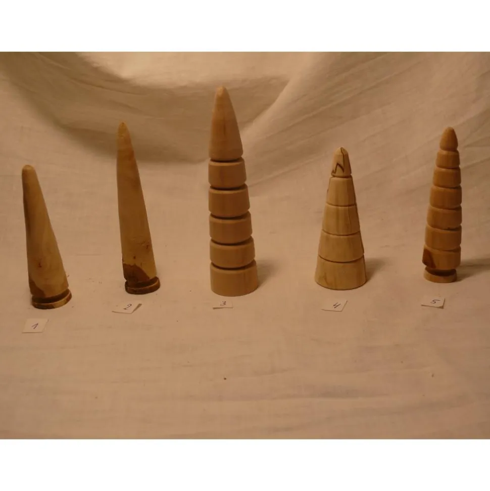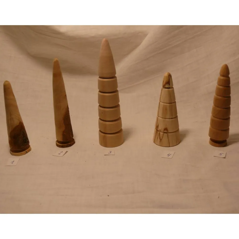 Von Hand gedrechselte Bäumchen, bestehend aus verschiedenen Holzarten.