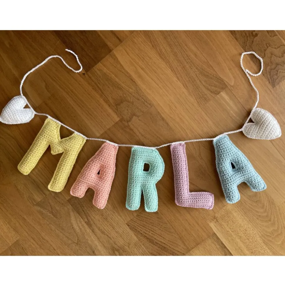 Gehäkelte Namensgirlande/Namenskette mit 3D-Buchstaben – einzigartige Deko für das Kinder- und Babyzimmer