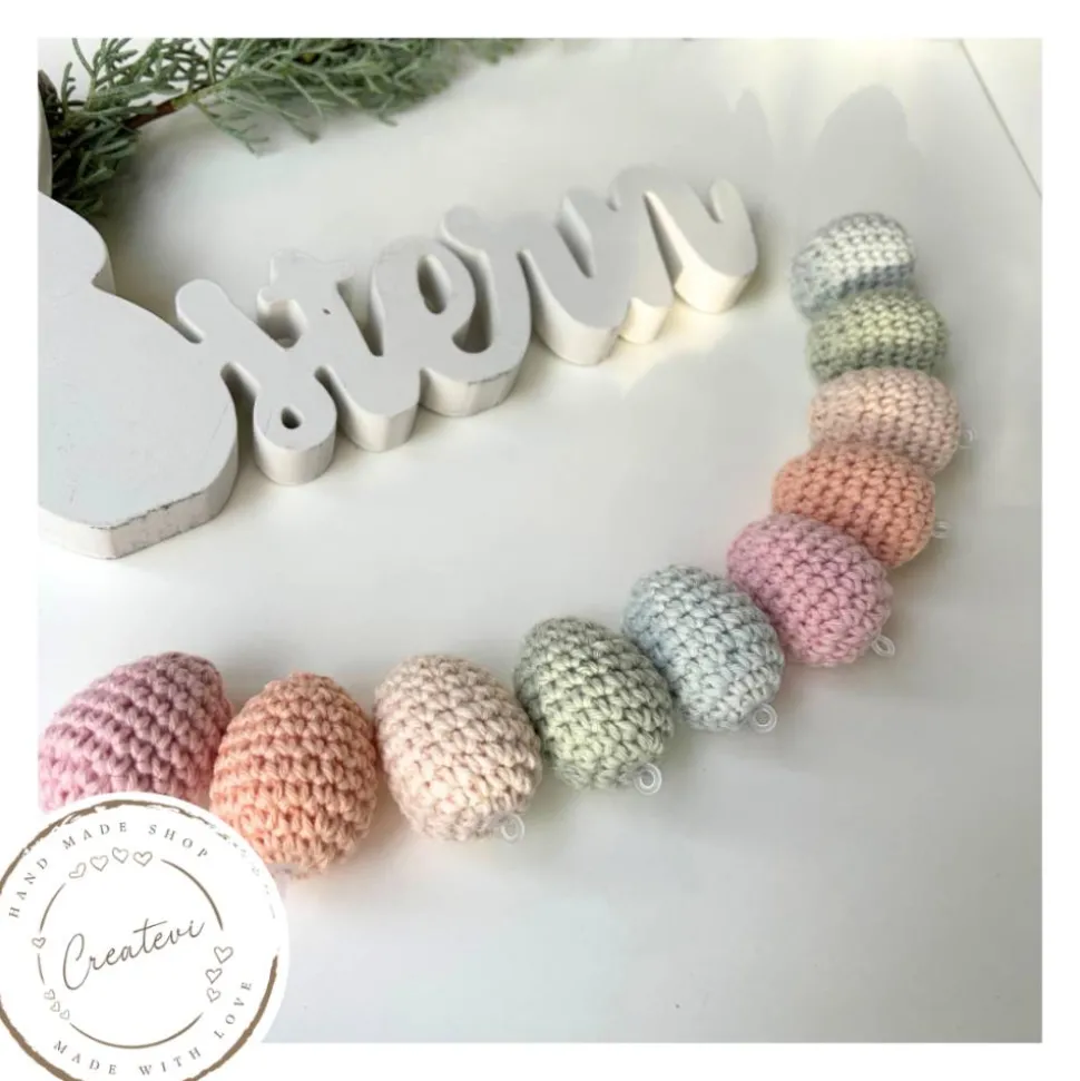 Dieses Set aus zehn pastellfarbenen gehäkelten Ostereiern bringt eine ruhige, frühlingshafte Stimmung in deine Osterdekoration. Die handgefertigten Ostereier bestehen aus stabilen Kunststoffeiern, die sorgfältig mit 100 % Baumwollgarn umhäkelt sind. Dadurch entsteht eine langlebige und wiederverwendbare Osterdeko, die du jedes Jahr erneut einsetzen kannst.