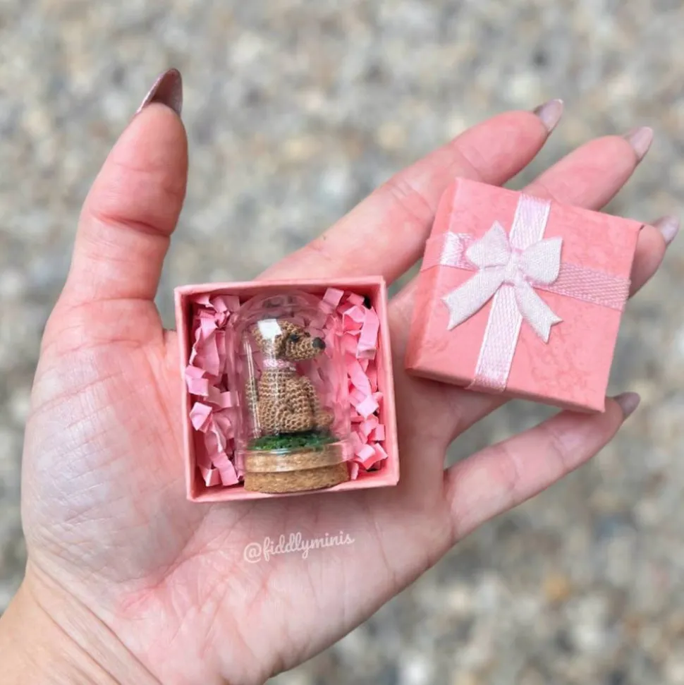 Um ihn perfekt in Szene zu setzen wird er in einer kleinen Glaskuppel und einer hübsche Geschenkschachtel verpackt. Dies macht ihn zu einem idealen Geschenk für alle Miniatur- und Hundeliebhaber.
