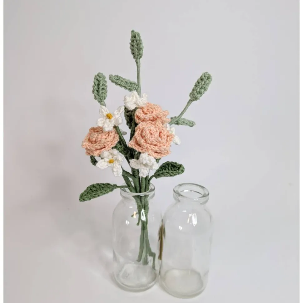 gehäkelter Miniblumenstrauß rosa Rosen | Vintagedekoration | Geschenkidee Hochzeitstag | kleine Aufmerksamkeit