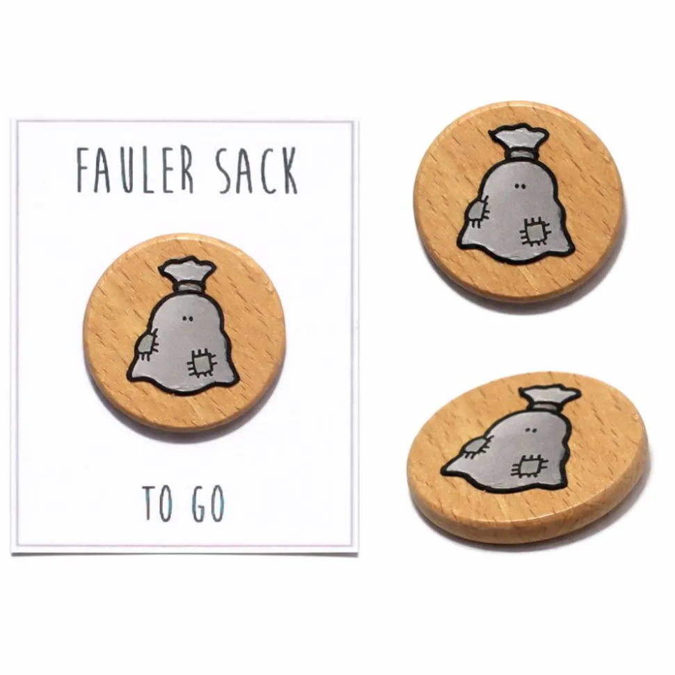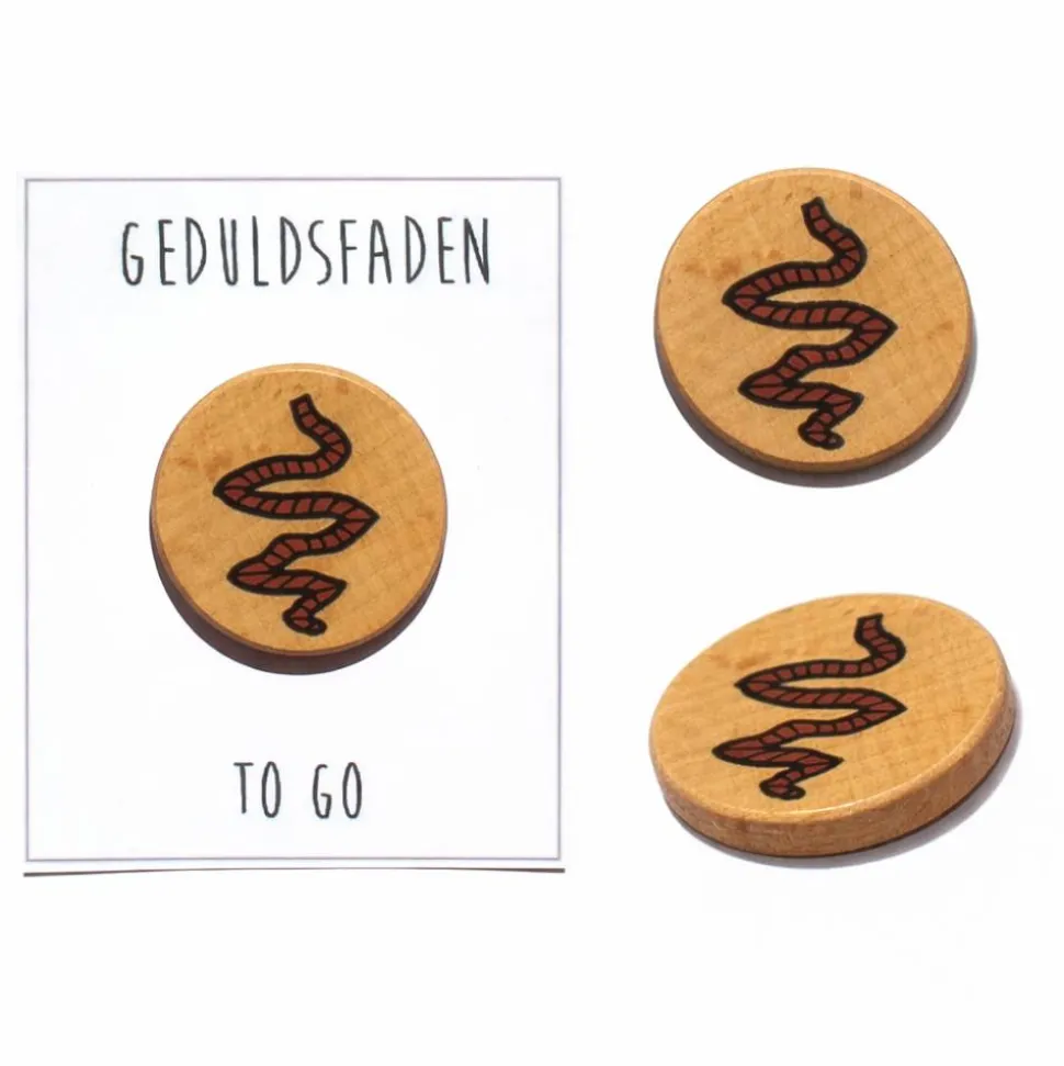 Das Holzscheibchen ist mit einem kleinen Klebepunkt auf der Spruchkarte fixiert – hält, kann aber ganz easy abgezogen werden.
