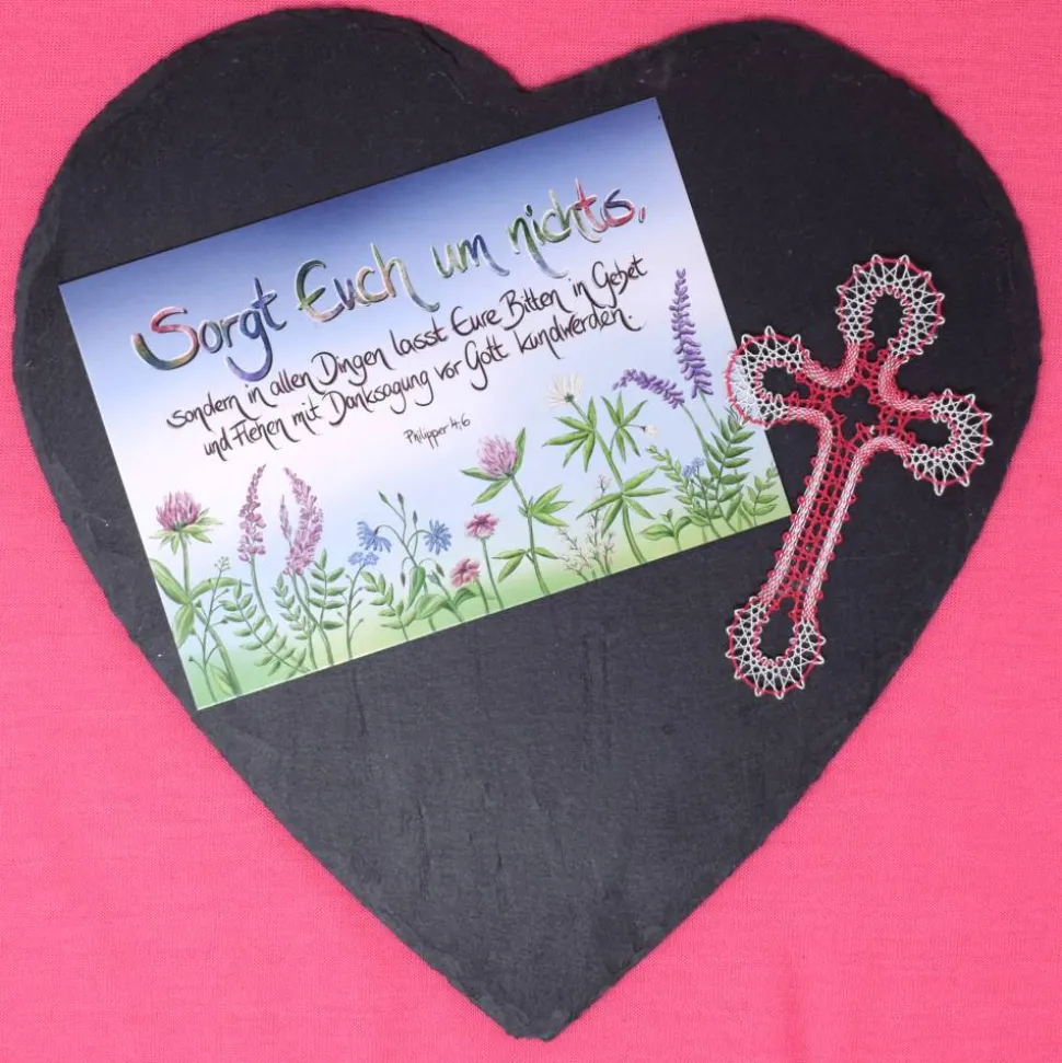 Das geklöppelte Kreuz wird mit einer farblich passenden Karte geliefert, sodass du es perfekt als Geschenk oder zur Dekoration nutzen kannst. Die hochwertige Verarbeitung und das traditionelle Handwerk machen dieses Kreuz zu einem besonderen Hingucker.