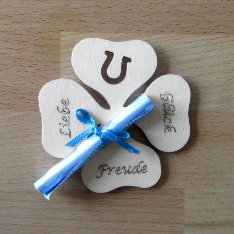 Geld-Glücksklee „Liebe, Freude, Glück“ aus Holz