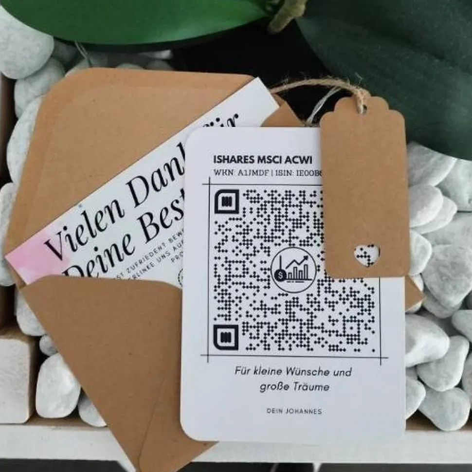 ❤️️ Du möchtest deinem Patenkind, Enkelkind, oder deinen Kindern eine Aktie, Etf, Kryptowährung schenken? Und bist noch auf der Suche nach einer schönen Verpackung? Dann ist diese QrCode Geschenkkarte perfekt.