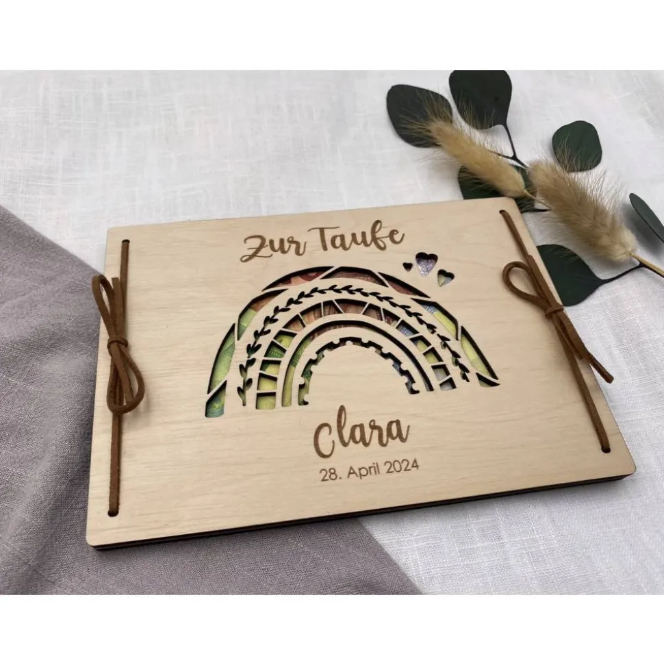 Für das Geldgeschenk nutzen wir 100% FSC zertifiziertes Pappelsperrholz, welches 3mm dick ist und wird inklusive Kunstlederband zum zubinden geliefert.