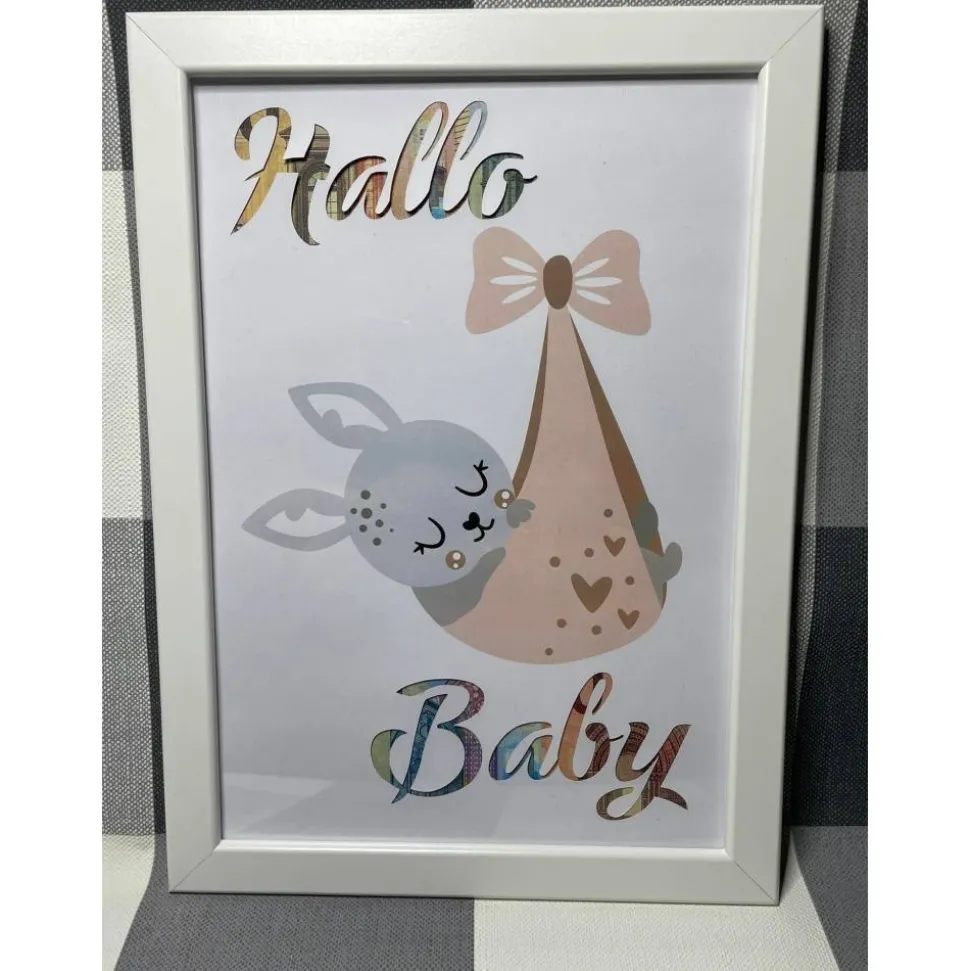 Geldgeschenk Bilderrahmen Geburt Hase personalisierbar DIN A4